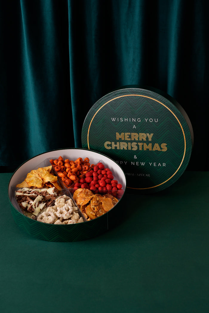 Mix de mazapán, charro chamoy, mango enchilado, bark de flakes, hot nut y palomita oreo