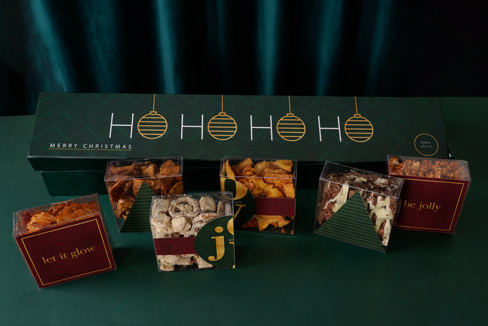 Papa chamoy, chips de piña, palomita chamoy, bark de flakes, manzana toffee y mix de mazapán.